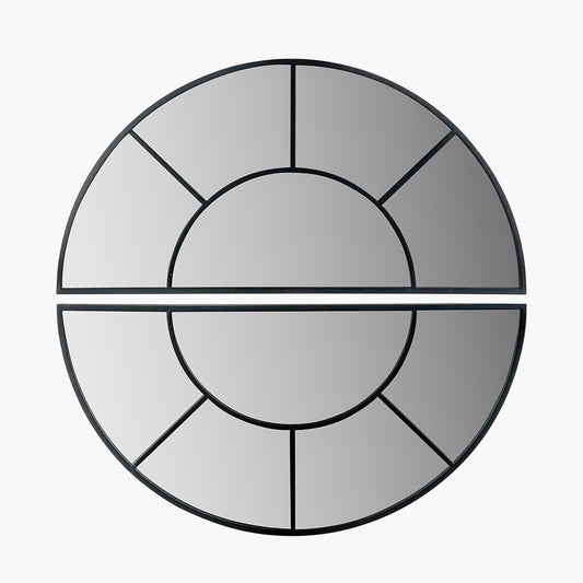 Black Metal 2 Half Moon Section Wall Mirror – 92cm Modern Round Industrial Statement Mirror