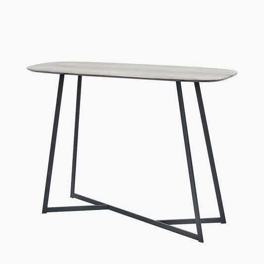 Ukiah Grey Oak Veneer and Black Metal Console Table
