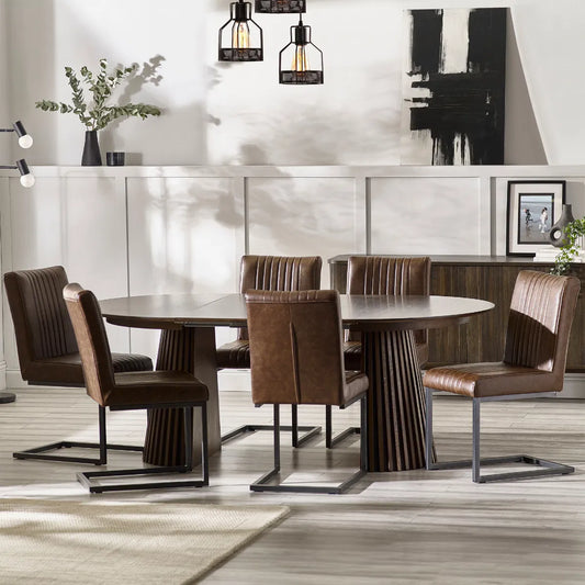 Arya Extending Dining Table in Dark Oak Veneer – Japandi Style Round to Oval Table 200 cm