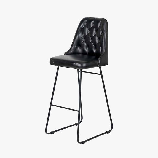 Ash Black Leather Diamond Back and Black Metal Camillo Bar Stool