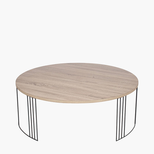 Atri Dark Oak Wood Veneer and Black Metal Coffee Table – Modern Square Statement Table