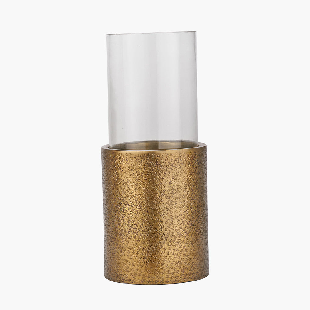 Antique Brass Finish Metal and Clear Glass Hurricane