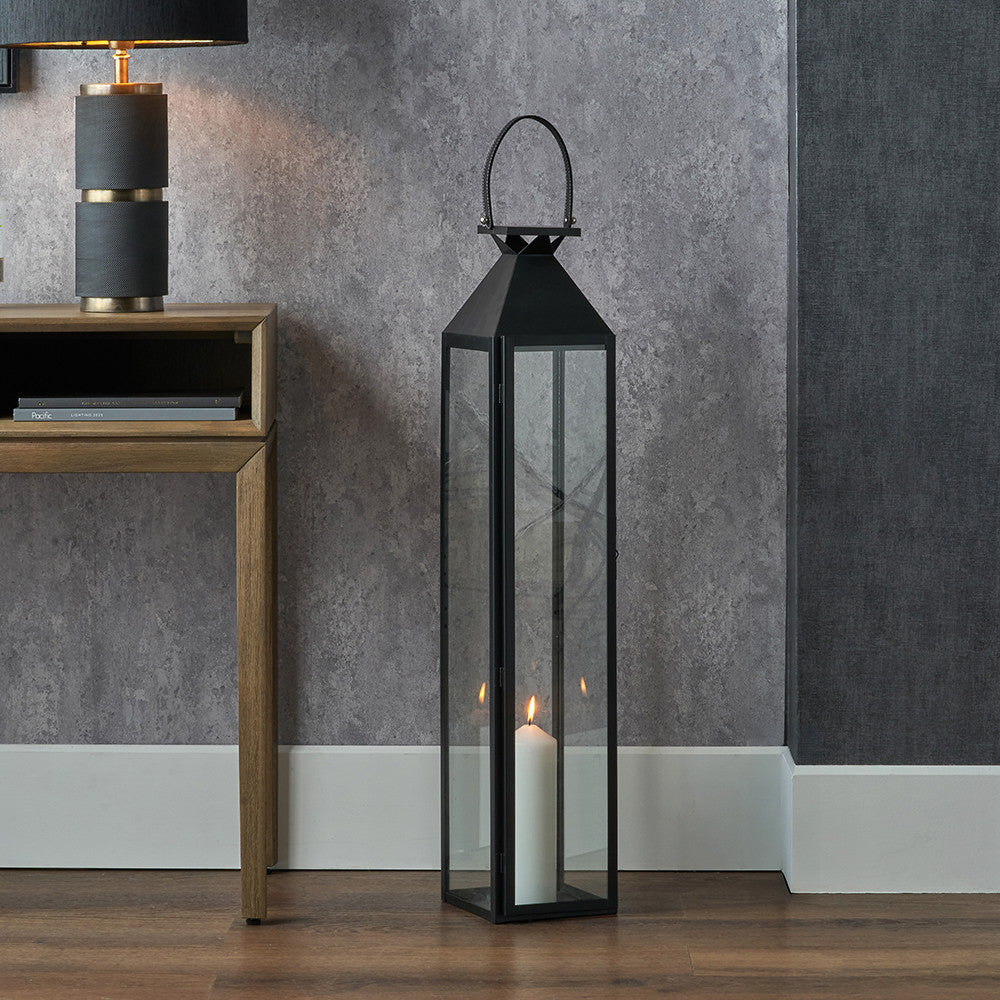 Introduce atmospheric elegance to your home with the Black Stainless Steel and Glass Large Tall Lantern. Perfect for adding a statement glow during special occasions, dinner parties, or cosy nights in, this lantern’s sleek black finish and tall proportions make it a striking focal point. Thoughtful detailing and a versatile aesthetic allow it to style seamlessly across modern, rustic, or transitional interiors.