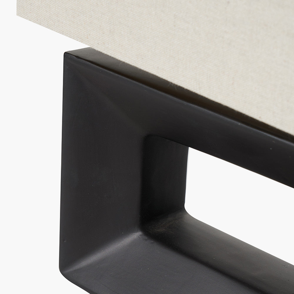 Modern meets retro design with the Block Black Ceramic Rectangular Table Lamp — a striking feature piece perfect for elevating any interior. The bold rectangular form creates an instantly modern profile, while the contrasting matt black ceramic base and neutral linen shade bring stylish balance and sophistication. Ideal for side tables, consoles or bedside styling, this lamp delivers both visual impact and warm illumination. Thoughtful detailing and a versatile aesthetic make it easy to style across modern, rustic or transitional schemes.
