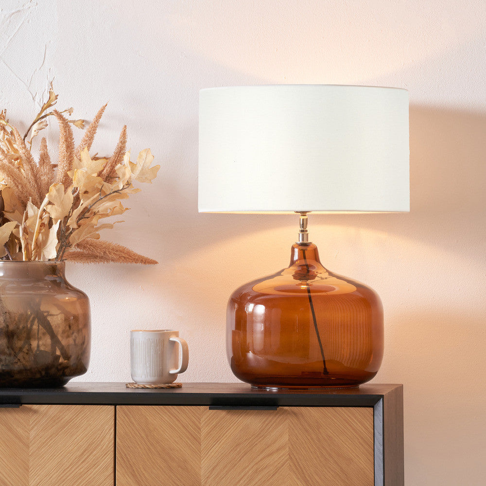 Corby Amber Glass Table Lamp with Ivory Shade | Table Lamp
