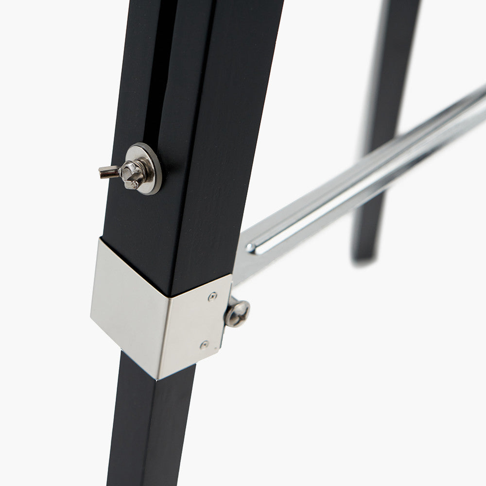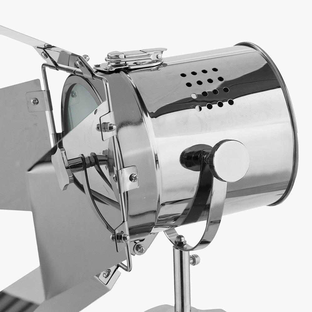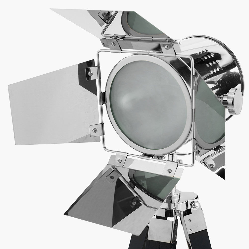 Make a cinematic statement with the Hereford Silver & Black Tripod Floor Lamp. Inspired by classic film studio lighting, this striking floor lamp features a polished silver spotlight head complete with shutter detailing, paired with a bold black tripod base for a refined industrial finish.