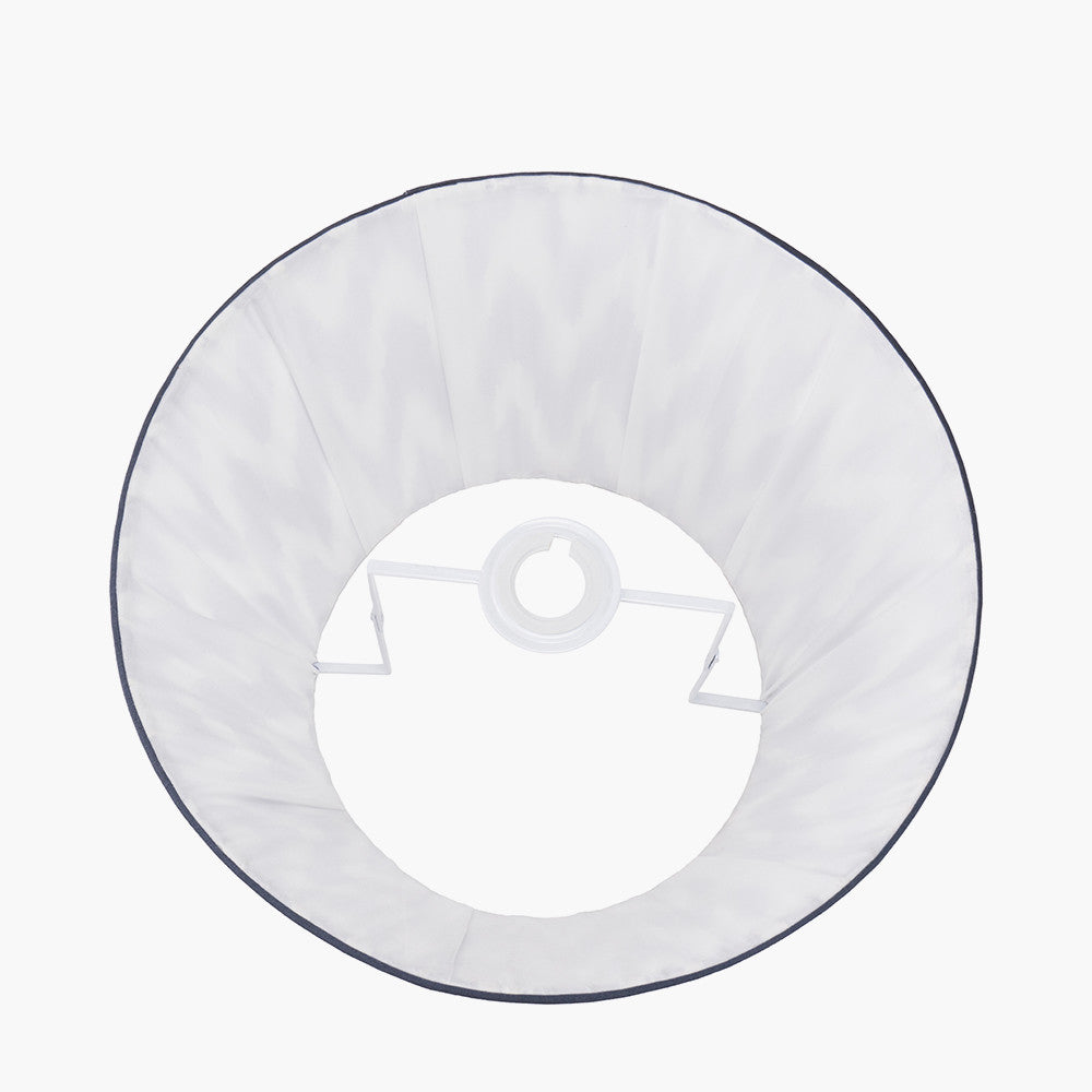 The Kamilah 35cm Mushroom Pleat Lampshade brings a vibrant, contemporary feel to any room. Crafted from high-quality cotton, it features a bold blue and white chevron pattern, enhanced with a deeper blue binding for a refined finish. Its tapered silhouette and mushroom-pleated detailing create a striking yet timeless look that pairs beautifully with a wide variety of lamp bases. Designed for complete versatility, the reversible gimbal allows this shade to be used on table lamps, floor lamps, or as a ceiling pendant. Thoughtful detailing and a modern aesthetic make the Kamilah an effortless addition to coastal, rustic, or transitional interiors.