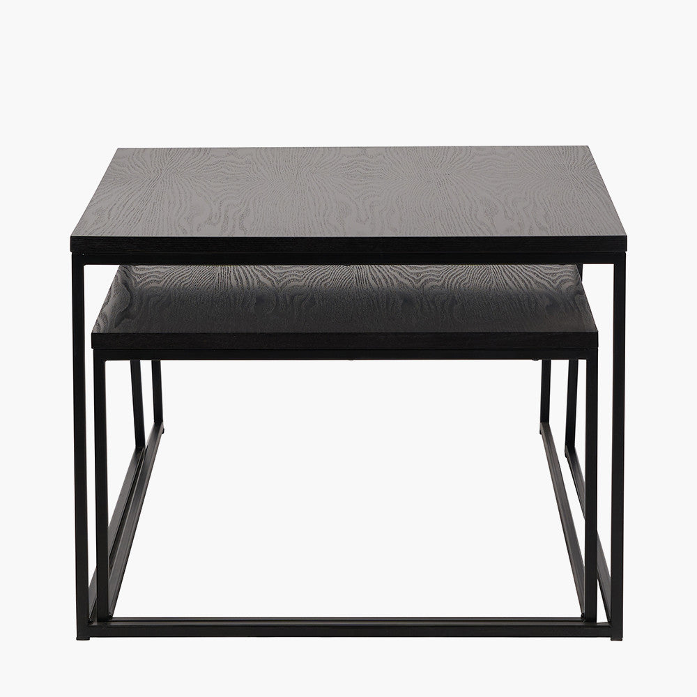 Mashiko Set of 2 Black Ash Veneer and Black Metal Coffee Tables