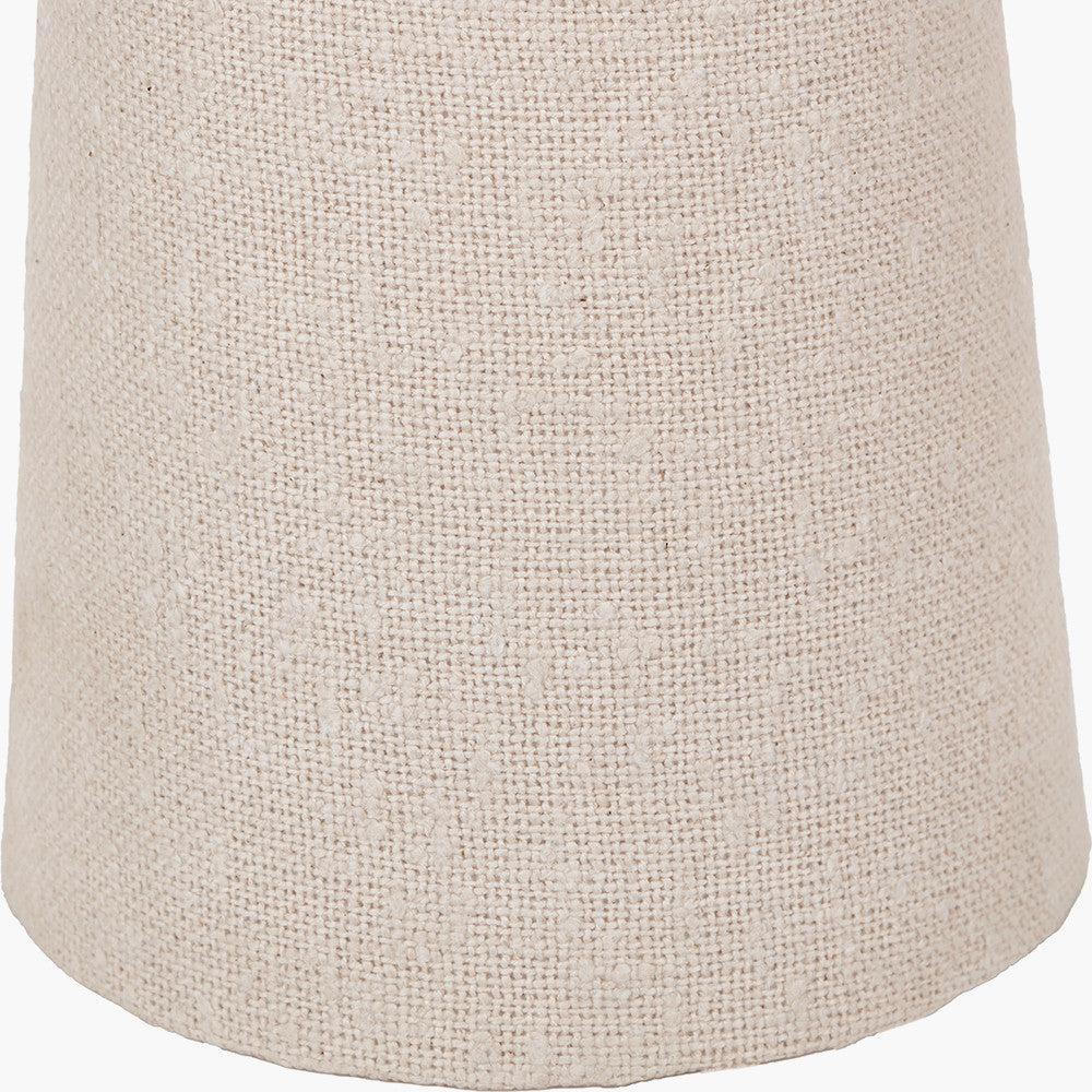Bring understated elegance and natural texture to your home with the Mirissa White Slubby Handloom Fabric Table Lamp. Expertly crafted in India, this beautifully balanced lamp features both the base and shade finished in a softly textured slubby fabric, creating a seamless and tranquil aesthetic. The gentle white tone and tactile finish make it an ideal choice for Scandi-inspired, neutral or minimalist interiors. Tall and refined in proportion, the Mirissa table lamp casts a warm, inviting glow, perfect for living rooms, bedrooms or quiet reading corners. Thoughtfully designed and effortlessly versatile, it complements modern, rustic and transitional spaces with ease.