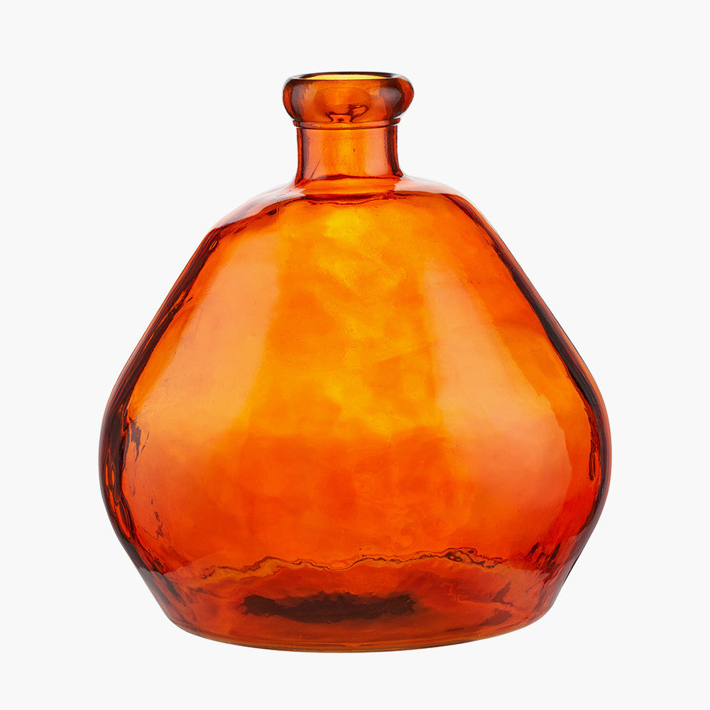 Striking in colour this vibrant recycled glass vase will create a perfect centre piece or focal point. Made in Spain using organic shaped recycled glass, this wide glass vase makes a bold statement in any space. Thoughtful detailing and a versatile aesthetic make it easy to style across modern, rustic or transitional schemes.