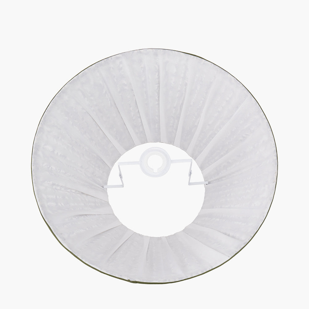 The Ornella 40cm Empire Lampshade brings refined elegance to any interior with its beautifully crafted mushroom pleat design and premium cotton construction. Adorned with a sophisticated green floral print and finished with tonal green binding, this shade adds charm, texture and natural warmth to your lighting. Its larger 40cm profile makes it an ideal focal point for statement bases, while the reversible gimbal allows for flexible styling on table lamps, floor lamps, or as a ceiling pendant. Thoughtful detailing and a versatile aesthetic make the Ornella shade easy to style across modern, rustic or transitional schemes, offering a timeless yet characterful finish to your home.