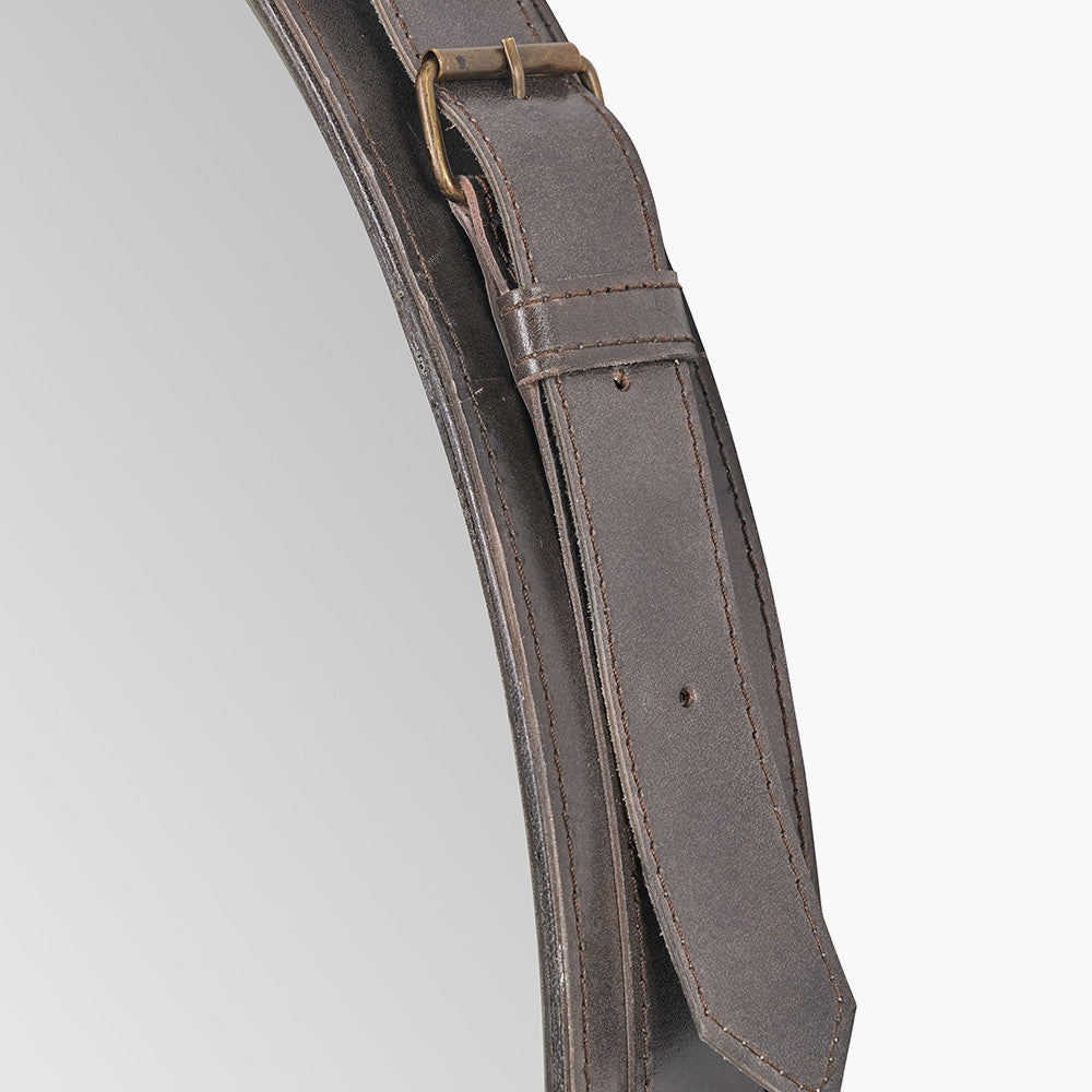 Peppercorn Leather Frame Round Wall Mirror – Sophisticated Modern Statement Piece