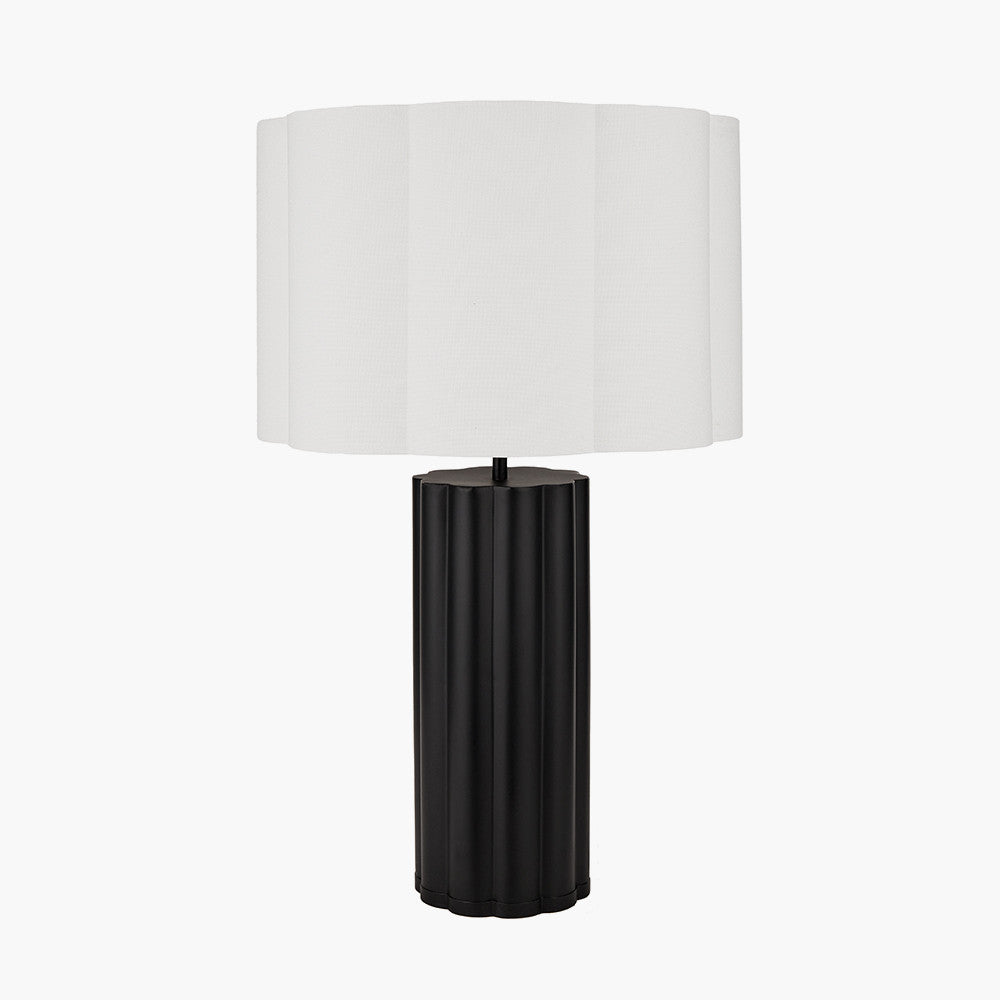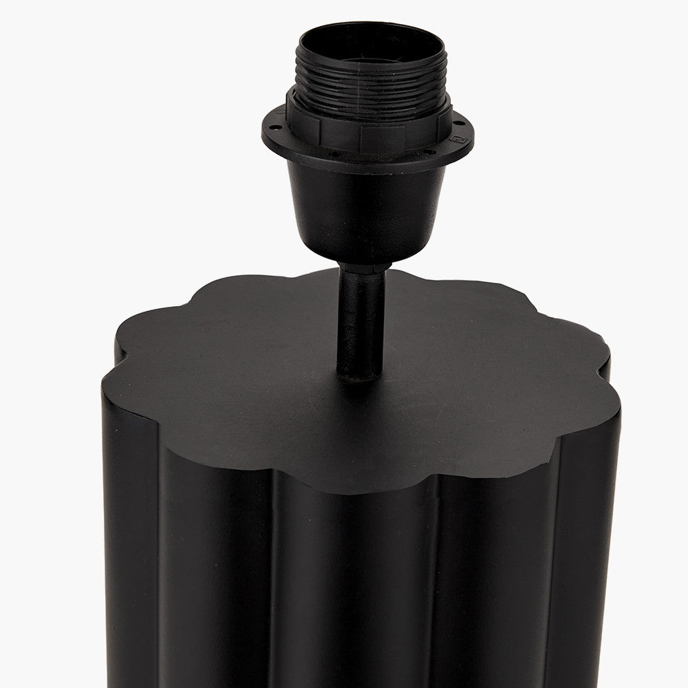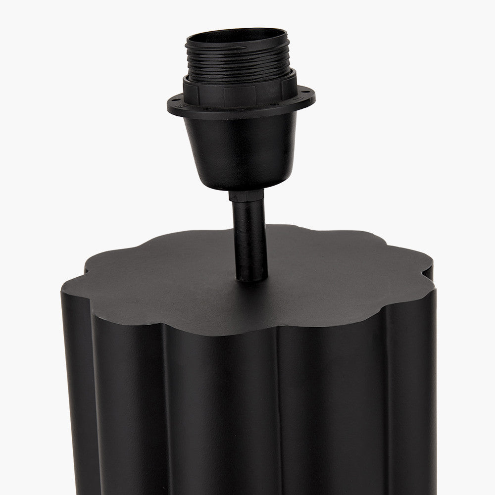 Our incredibly stylish black metal table lamp is sure to make a statement with its beautifully scalloped shape. The metal table lamp, lovingly crafted in India and hand-finished, looks fantastic with a white scalloped shade to complete the look or indeed, keep it simple with a cylinder shade. Recommended lampshade size 40cm diameter. Thoughtful detailing and a versatile aesthetic make it easy to style across modern, rustic or transitional schemes.