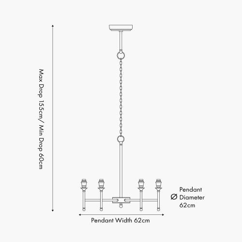With its generous proportions of W62 × D62 × H155 cm, the six-arm chandelier is ideal for dining rooms, hallways, or living areas where it creates both impact and ambience. For a customised look, pair with 16cm tapered lampshades, allowing you to tailor the design to your style and colour palette.