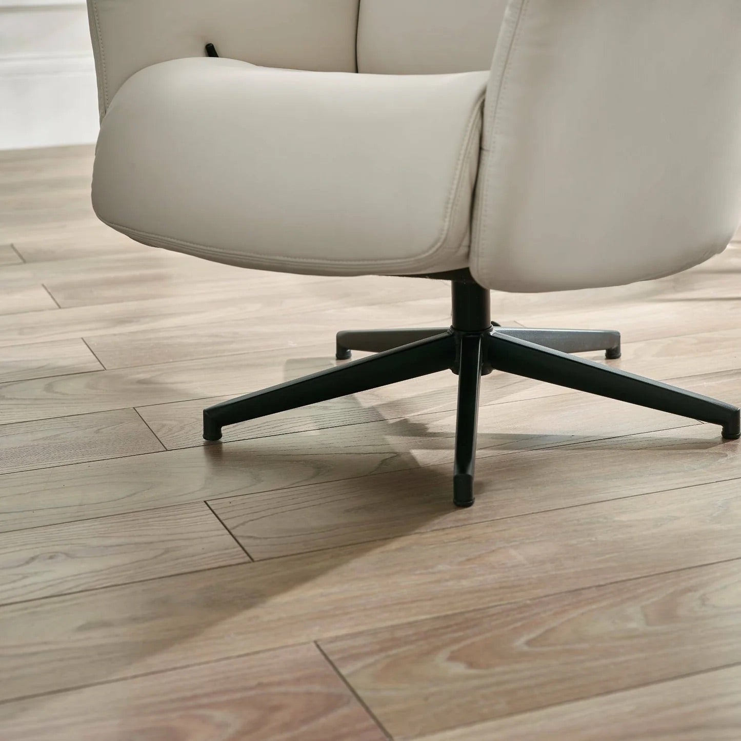 The included padded footstool completes the set, giving your legs the perfect place to rest while you read, watch TV, or simply unwind. Finished with a sleek black steel star base, the Priya Recliner combines durability with modern style, making it a standout piece for UK homes.