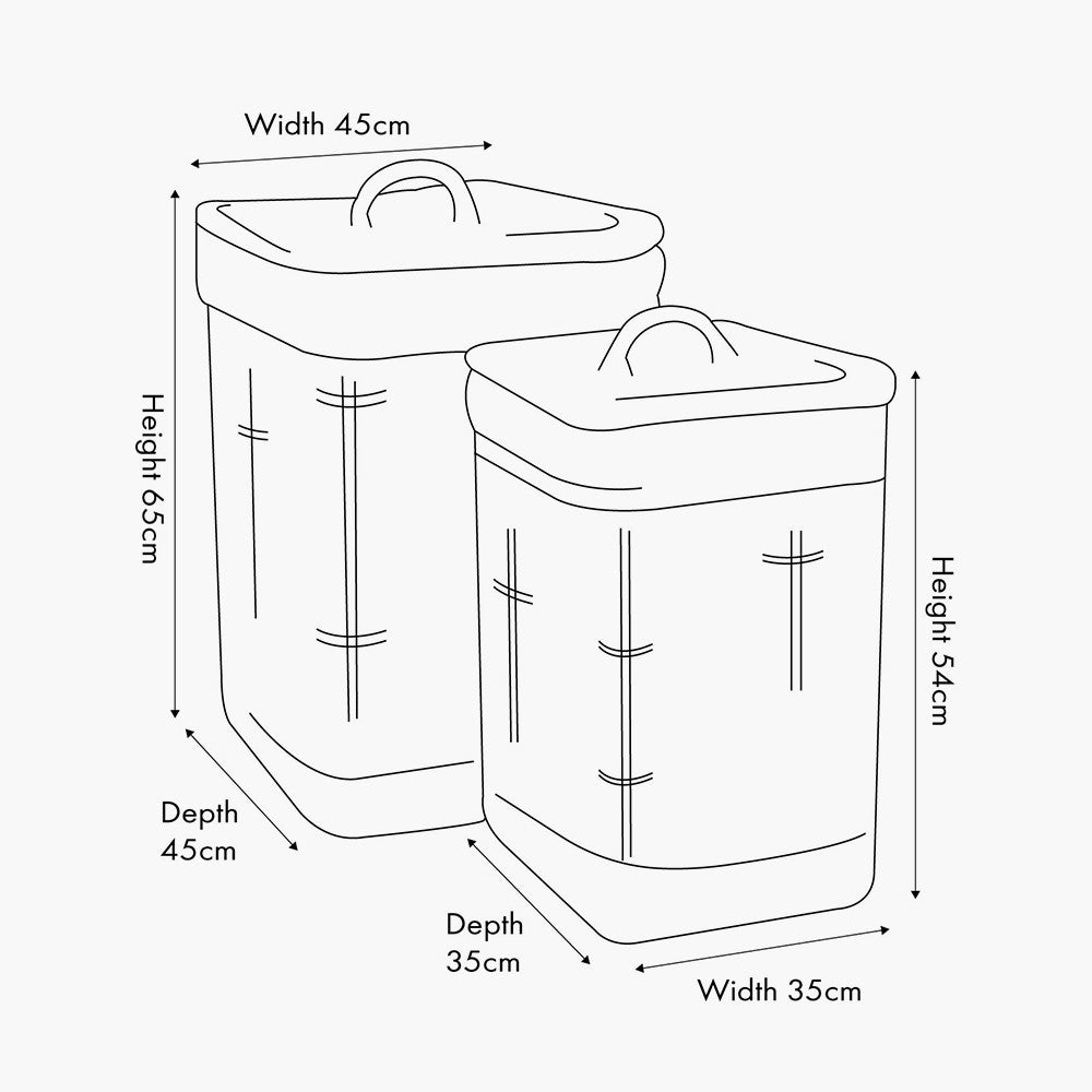 - Dimensions – Large: W45 × D45 × H65 cm | Small: W35 × D35 × H54 cm.