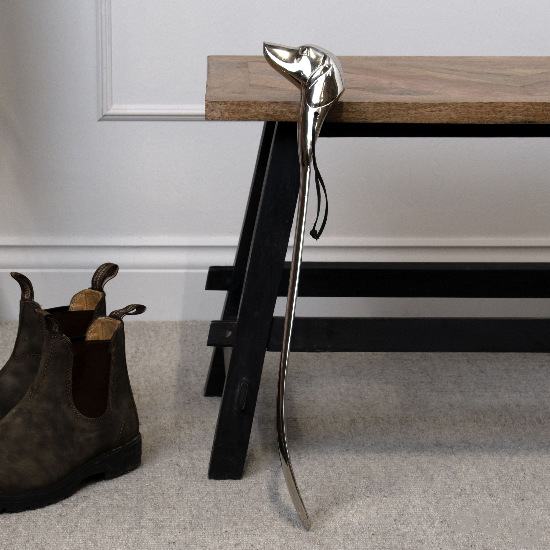 Silver Nickel Dog Head Detail Shoe Horn – Elegant Decorative Shoe Accessory for Timeless Interiors