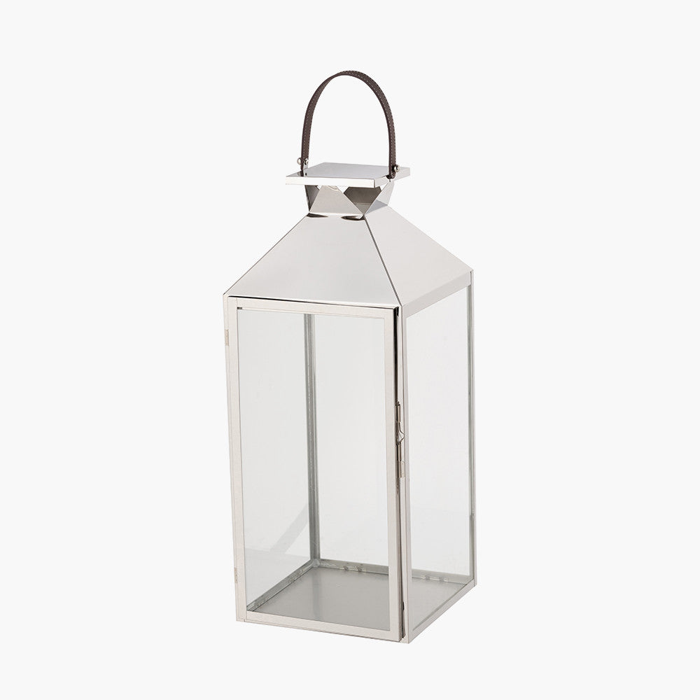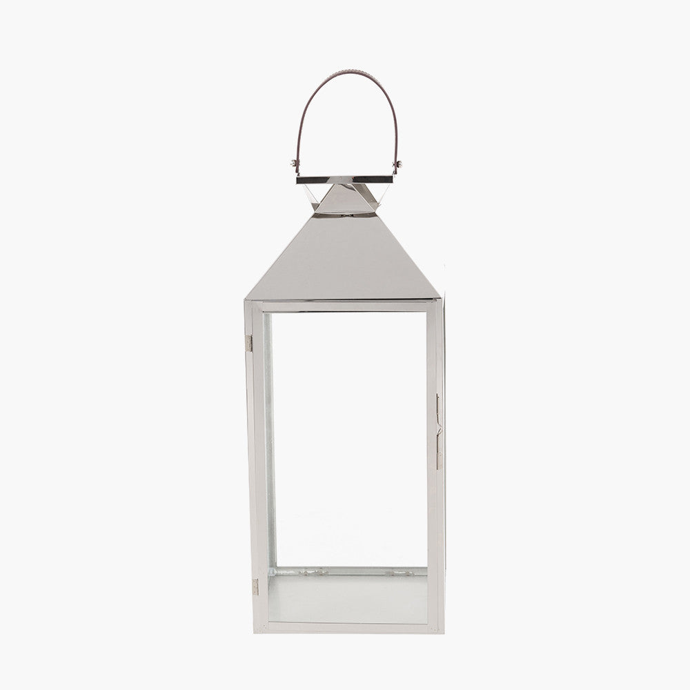 Add an atmospheric elegance to your living space with the Silver Stainless Steel and Glass Large Lantern. Perfect for cosy nights in, dinner parties, or special occasions, this statement lantern is designed to hold a pillar candle and create a warm, inviting glow. Its versatile design complements modern, rustic, or transitional interiors, making it a timeless decorative piece for any room.