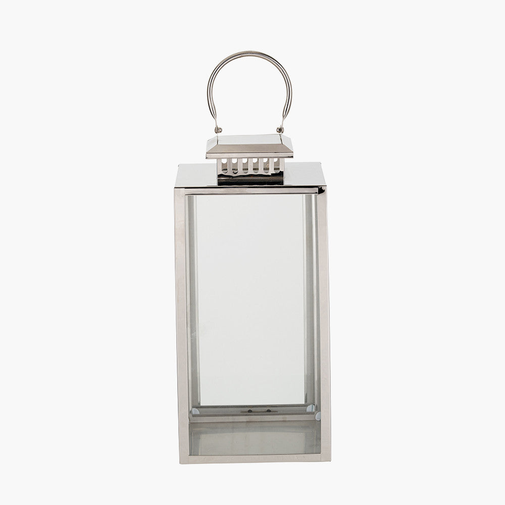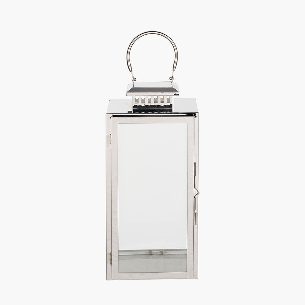 Silver Stainless Steel and Glass Medium Rectangular Lantern
