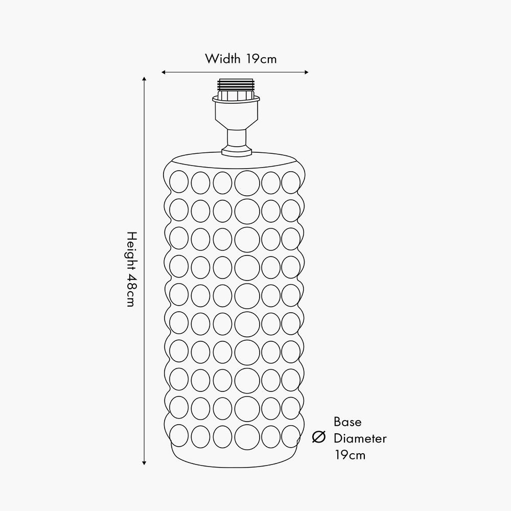Enhance your living space with this tall, stylish ceramic table lamp base. Its striking, black finish and unique bobbles make it a standout piece that will elevate any room. Personalise the lamp base with one of our stunning lampshades to complete the look. Recommended lampshade size 40cms diameter. Thoughtful detailing and a versatile aesthetic make it easy to style across modern, rustic or transitional schemes.