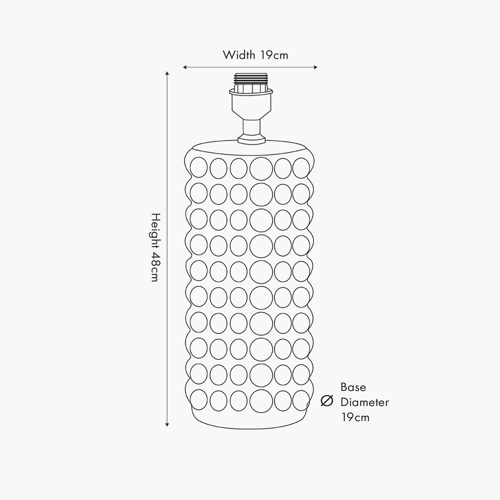 Enhance your living space with this tall, stylish ceramic table lamp base. Its striking clean white finish and unique bobbles make it a standout piece that will elevate any room. Personalise the table lamp base with one of our stunning lampshades to complete the look. Recommended lampshade size 40cms diameter. Thoughtful detailing and a versatile aesthetic make it easy to style across modern, rustic or transitional schemes.