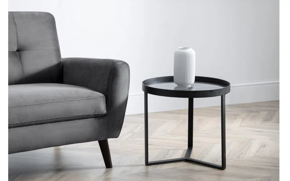 Elevate your living space with the Soho Coffee Side Table, a perfect blend of sophistication, functionality and modern minimalist design. Featuring a geometric black metal base and a smoked tempered glass top, this sleek design complements any contemporary interior.