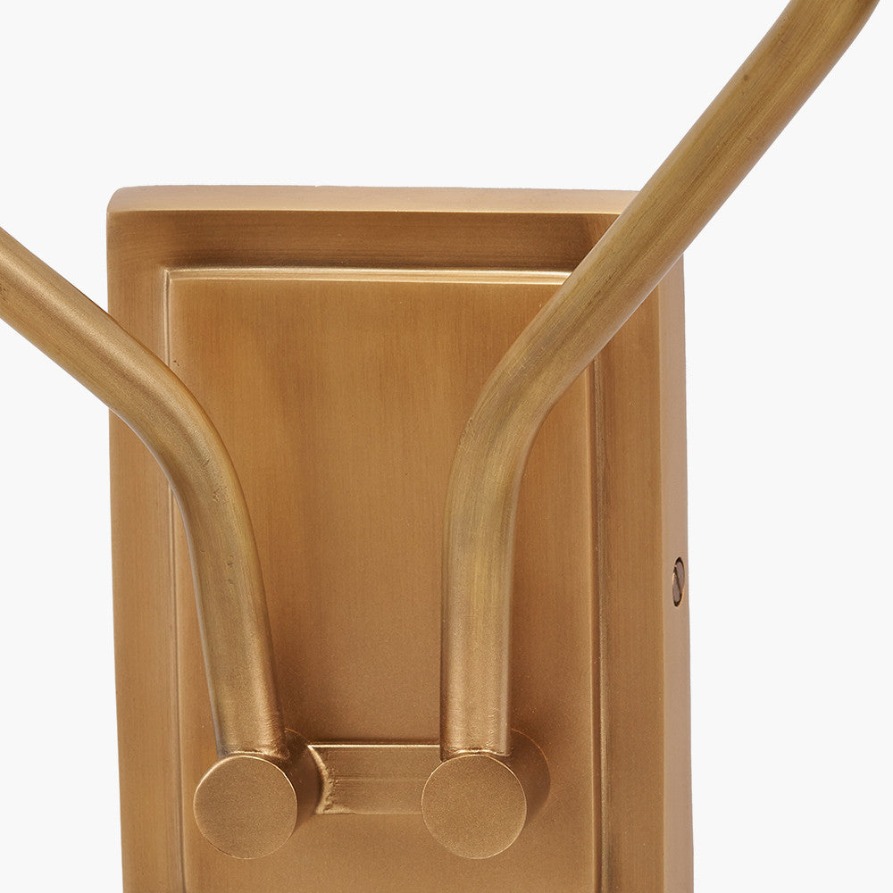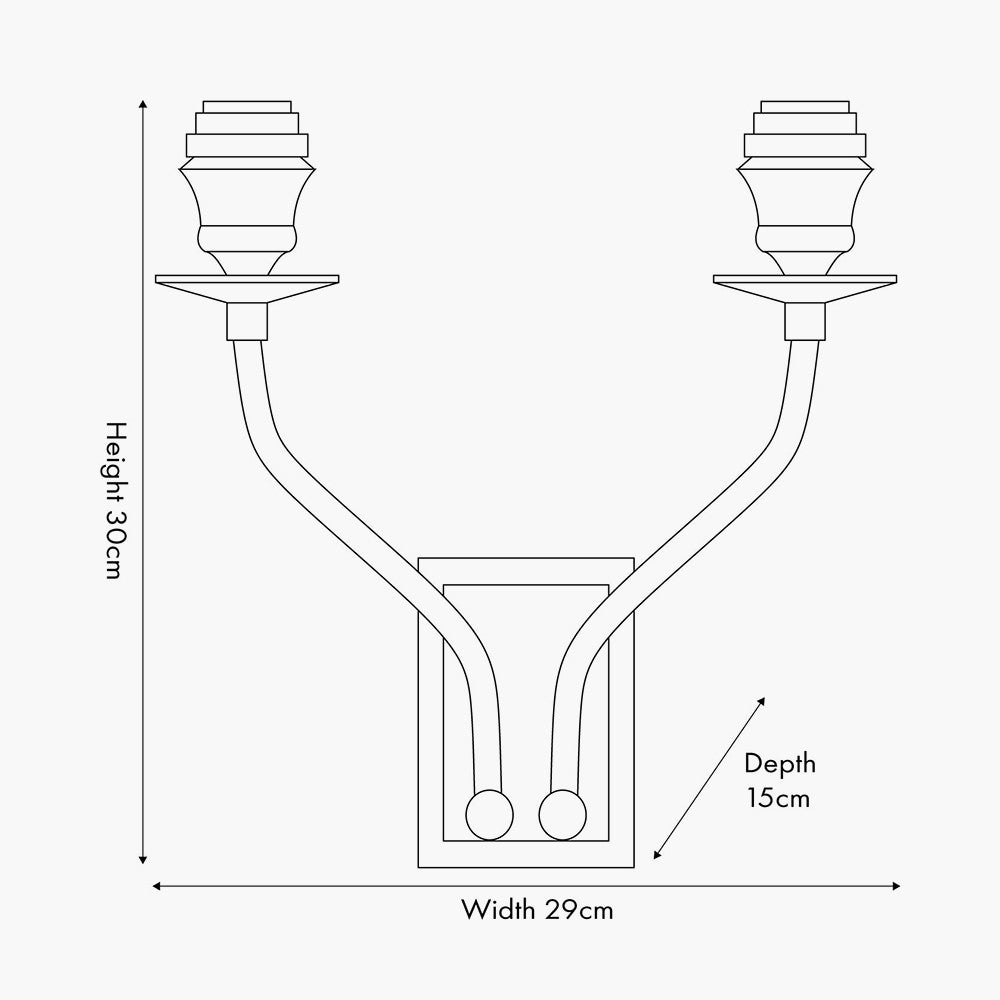 Indulge in ultimate style with our Tatiana Antique Brass Metal Double Wall Light. Lovingly handcrafted in India from brass the stunning double wall light with curved arms and a stepped wall plate is sure to make a statement. The stylish and versatile design would suit both a contemporary and traditional interior. We recommend pairing this beautiful wall light with a 16cm or 18cm tapered lampshade to complete the look. Thoughtful detailing and a versatile aesthetic make it easy to style across modern, rustic or transitional schemes.