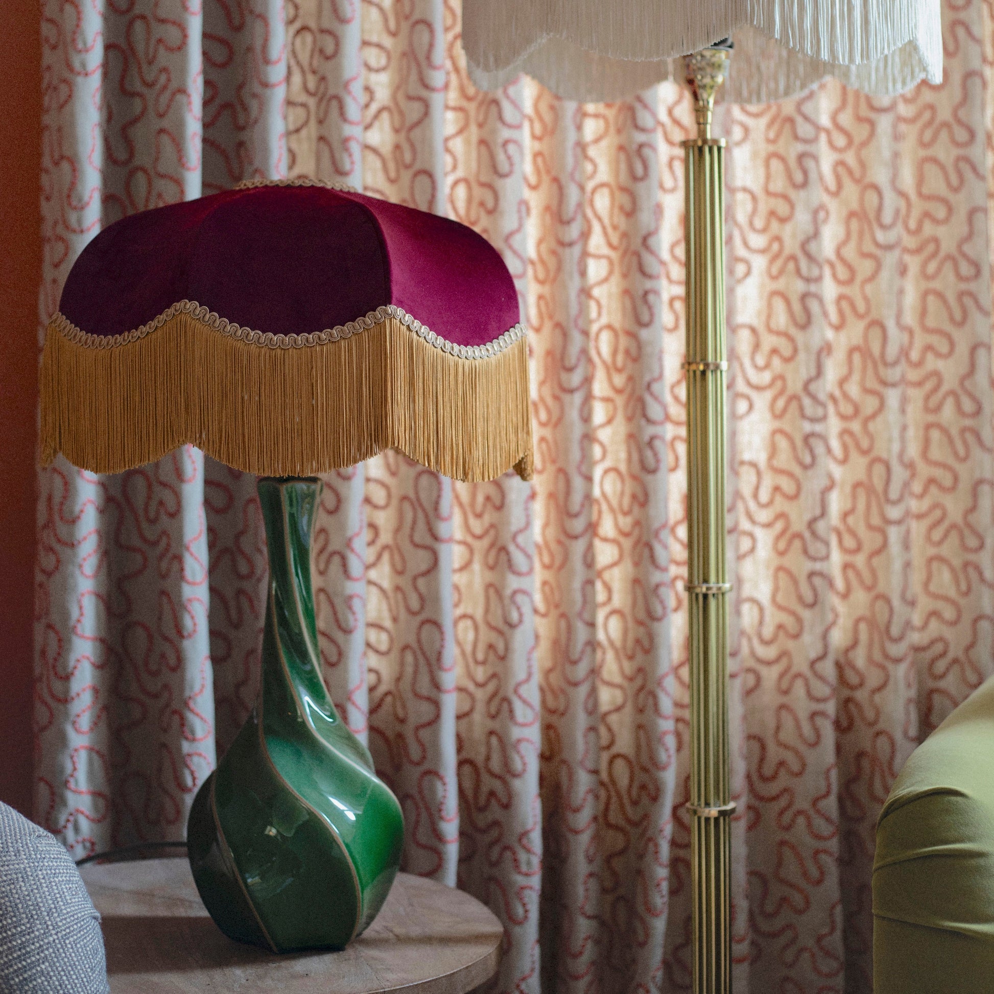 Perfect for creating atmospheric lighting, this shade works beautifully in cosy reading corners, layered living spaces, or bold, design-forward interiors. Whether paired with a classic lamp base or used as a striking ceiling feature, it delivers instant personality and mood. Available in sizes ranging from 30cm to 55cm, the Burgundy Fringed Lampshade offers versatile styling across table, floor, and ceiling lighting.