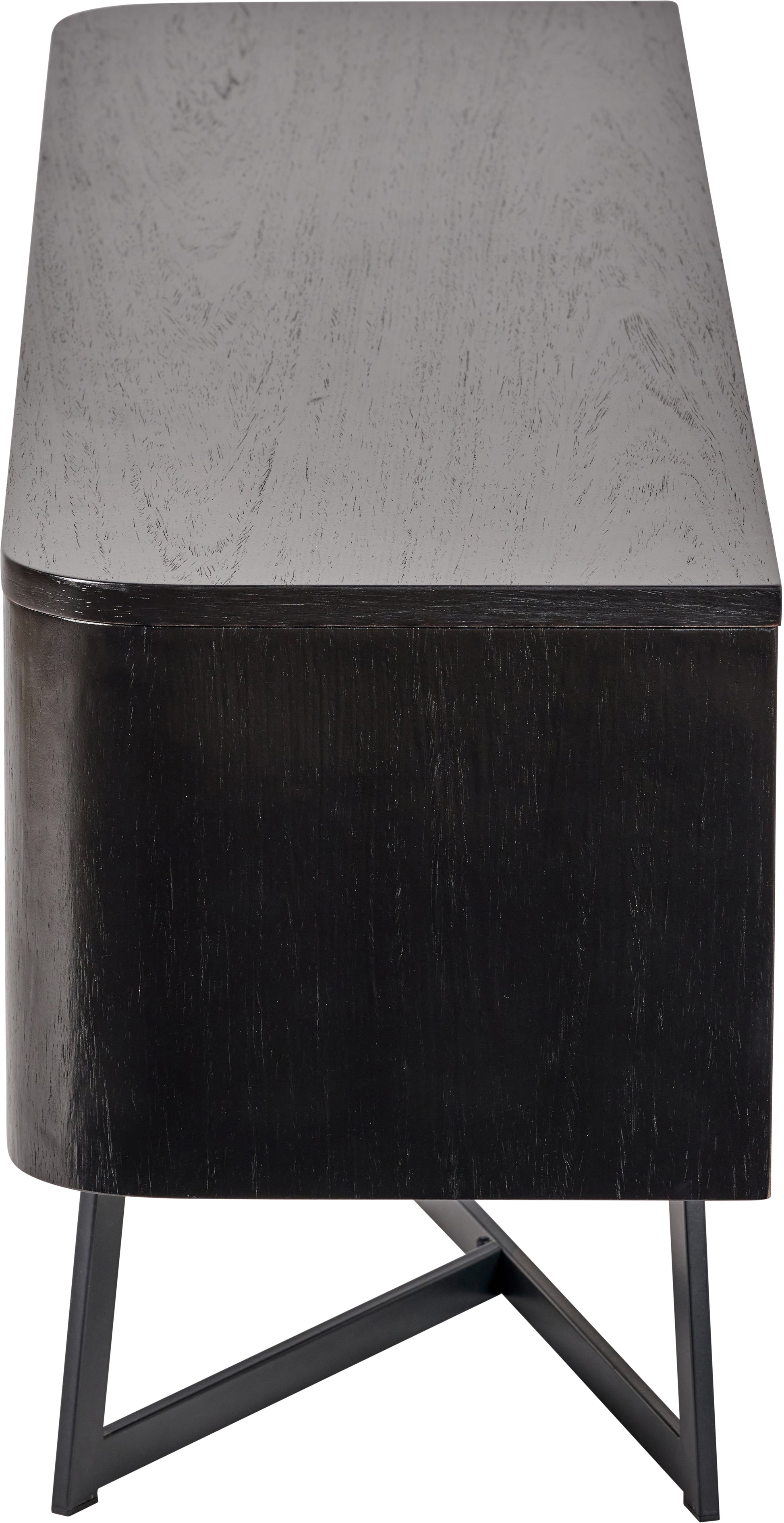 Make a statement with the Ukiah Black Ash Veneer and Black Metal 2 Door Low Unit, a distinctive piece that combines robust metal with elegant detailing. Ideal for both display and practical use, it brings a bold industrial note while remaining refined.