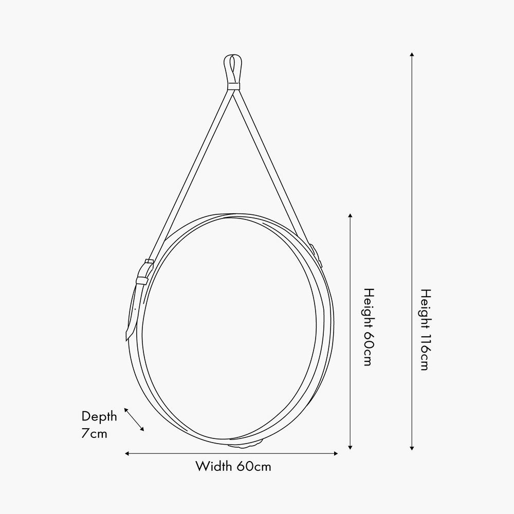 Transform your interior with the Vintage Brown Leather Frame Round Wall Mirror, a striking statement piece designed to add character and sophistication. Measuring W60 × D7 × H116 cm, this large decorative mirror features a rich brown leather frame and elegant hanging strap, blending contemporary style with timeless vintage charm. Perfect for creating a bold focal point in living rooms, bedrooms, or hallways, this mirror adds depth, light, and style to any space. Please note: not suitable for bathroom use. Its versatile aesthetic makes it easy to style across modern, rustic, or transitional UK interiors.