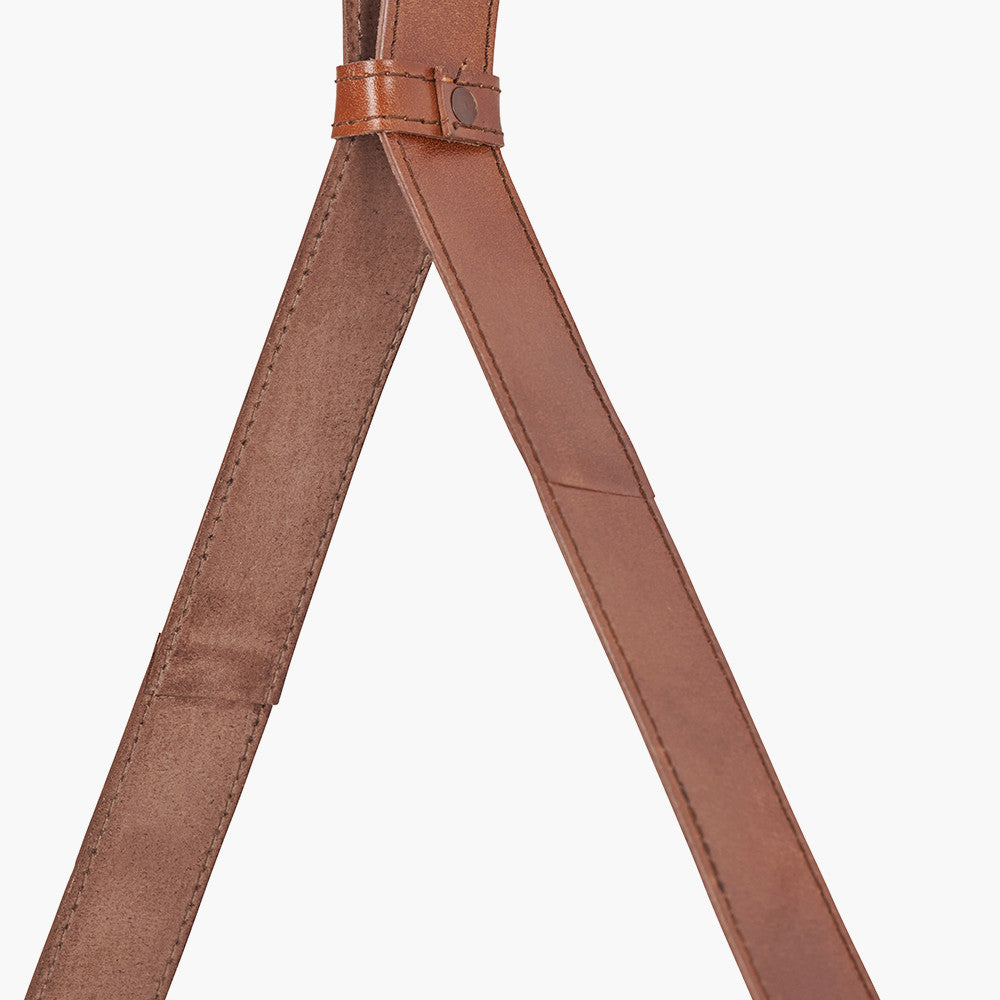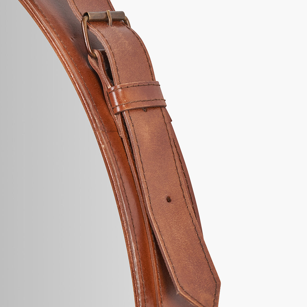 Vintage Brown Leather Frame Round Wall Mirror with Hanging Strap – Large Statement Mirror