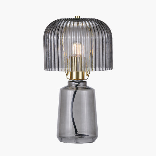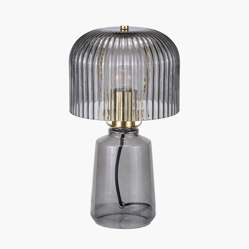Bring effortless style to your home with the Zandra Grey Ribbed Glass Table Lamp. Featuring a smooth glass base and a dome-shaped ribbed glass shade, this lamp is finished in a versatile neutral grey for timeless appeal. Perfectly proportioned, it sits beautifully on a bedside table, console, or side table, adding both function and charm. Its retro-inspired design blends seamlessly into modern, rustic, or transitional dΓ©cor schemes, making it a versatile lighting solution for any room.